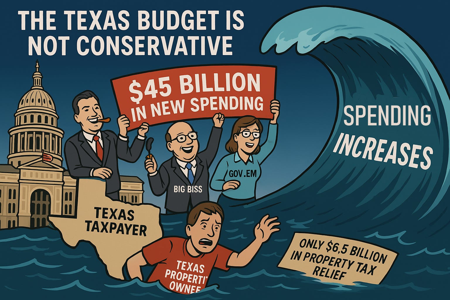 Most people would be hard pressed to call a budget that includes at least $45 billion in new spending (see below) and only $6.5 billion for property tax relief conservative, but that is what Texas Lt. Governor Dan Patrick did last week.
