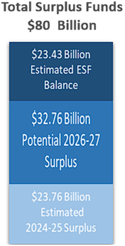 Taking the ESF balance into account, the potential budget surplus for the 2026-27 biennium ranges from $70.1 billion to $80 billion.